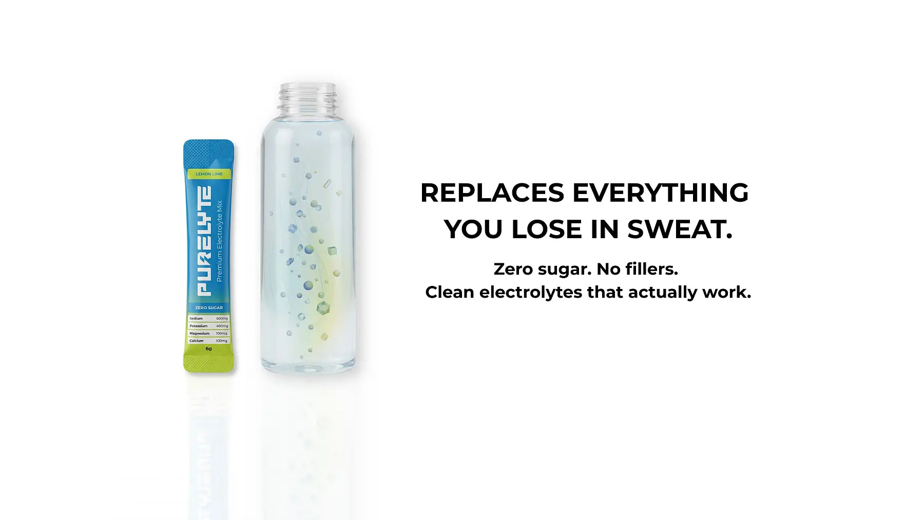 Purelyte replaces more of what you actually lose in sweat — with 3× the electrolytes of most sports drinks and none of the sugar, fillers or artificial junk.